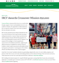 IRCF Awards Crossover Mission $50,000 IRCF recently awarded Crossover Mission $50,000 from [...]