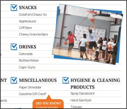 Score a slam dunk by purchasing our most needed items. Browse our Swishlist and easily purchase them through our Amazon store link. Real change made simple!